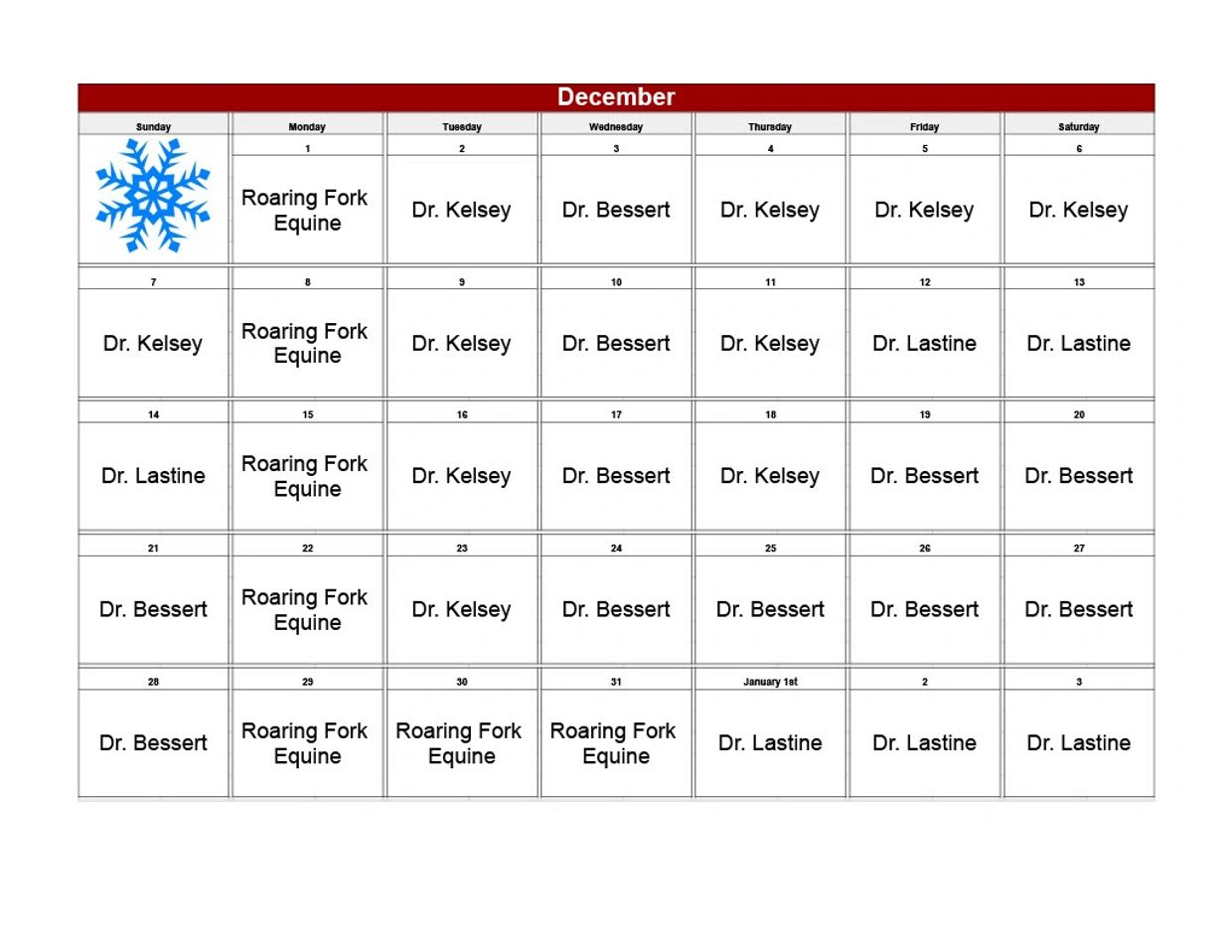 Weekends: Dr. Kelsey or Dr. Lastine who is stepping in on weekends from Friday 5pm-Sunday 7pm. Beyond 7pm we have no local emergency coverage and emergencies will need to be hauled to Roaring Fork Equine.